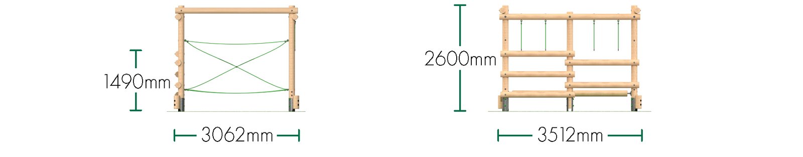 Cross Rope: A dynamic rope obstacle that requires children to balance while crossing, strengthening their coordination and upper body strength.