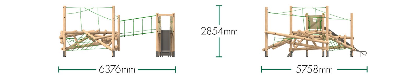 At the core of the Clamber Tower Mezzo are the climb nets, providing an exciting vertical challenge that helps children develop strength, coordination, and confidence as they scale the nets. Alongside the climb nets, the scramble logs add an interactive element, allowing children to practice their balance and agility as they move across the uneven timber obstacles.