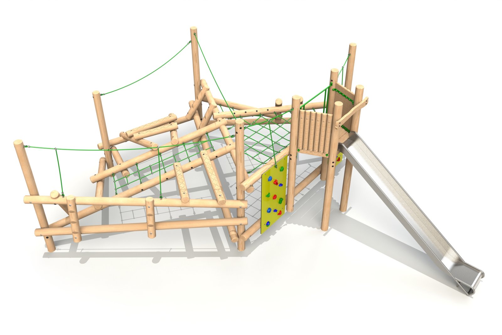 With its uniquely patterned timbers, the Clamber Stack 5 with Slide is both visually striking and tactile, encouraging children to explore the structure in creative ways and interact with the play elements. These distinct timber patterns spark imagination, adding a sensory layer to the physical challenges.