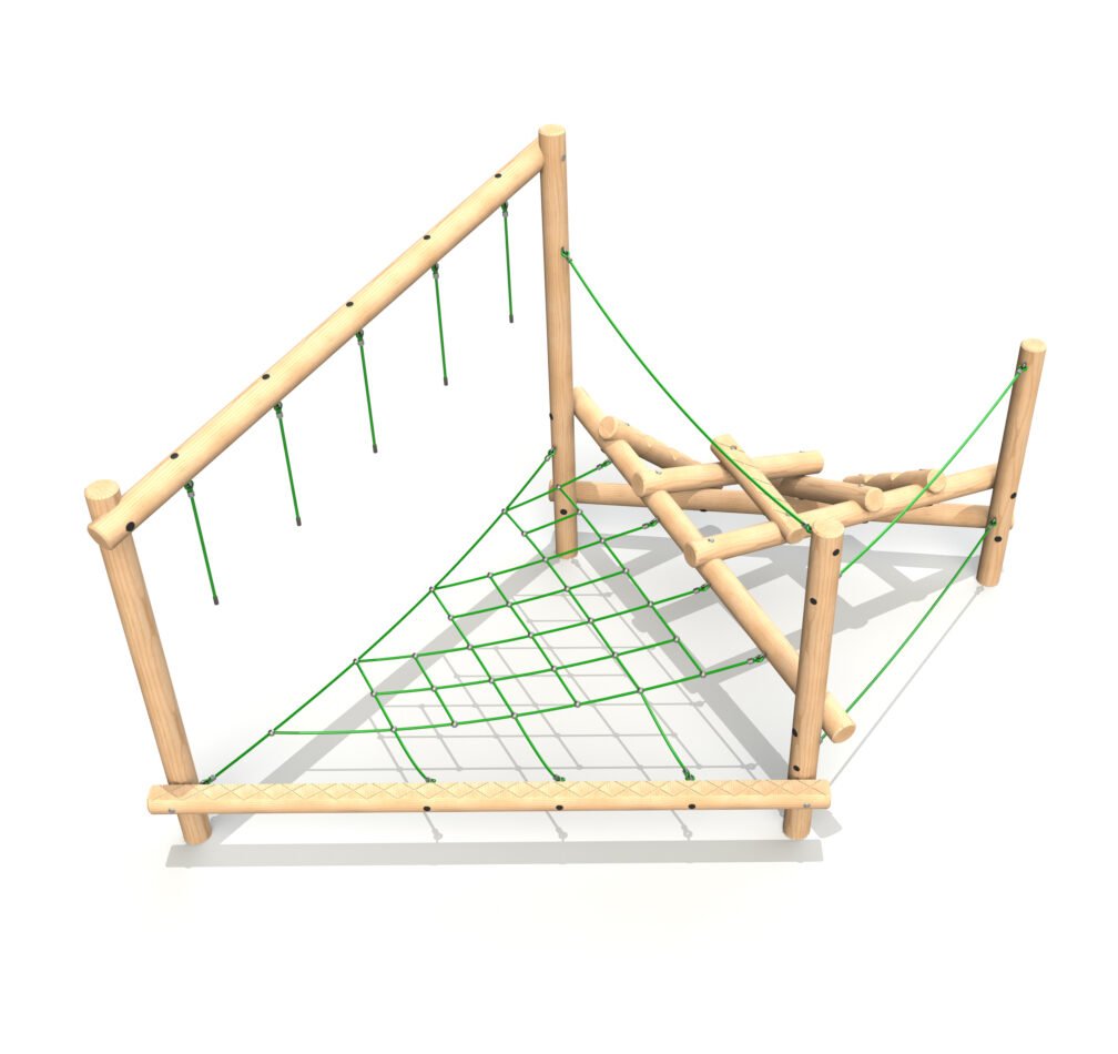 To challenge balance and stability, the balance beams provide a fun yet challenging test of coordination. Children work on their core strength as they carefully walk across the beams, improving their balance and focus with every step. The support ropes add an extra layer of safety, offering guidance as children move across the beams and navigate other tricky parts of the structure.