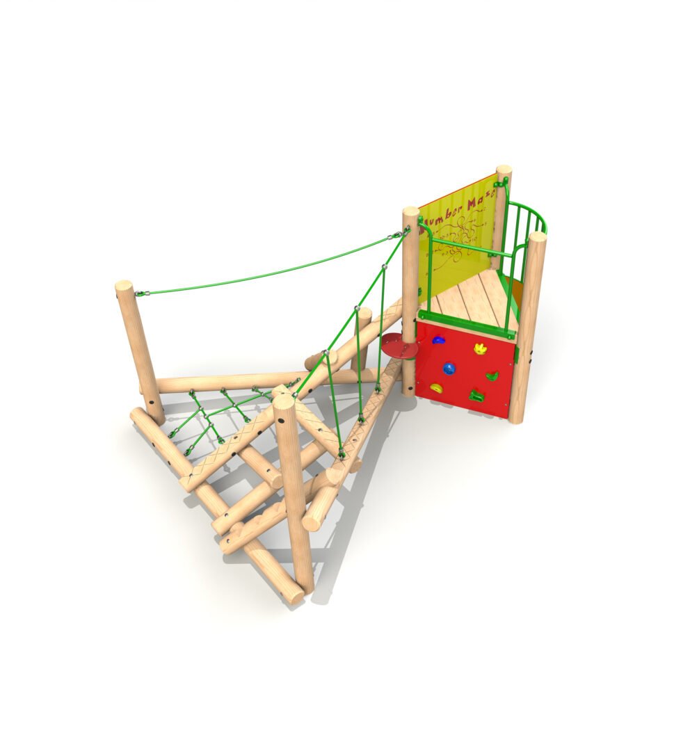 The balcony at the top of the structure provides an elevated platform for children to enjoy panoramic views of the playground, offering them a safe and exciting space to relax or plan their next adventure. The balcony adds a sense of height and accomplishment to the climbing experience, encouraging children to engage in imaginative play from a new perspective.