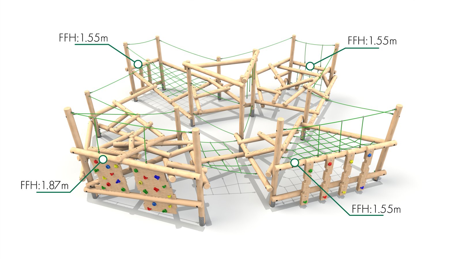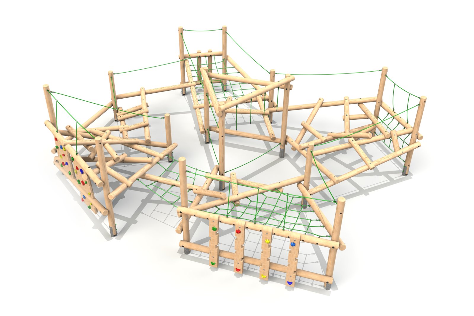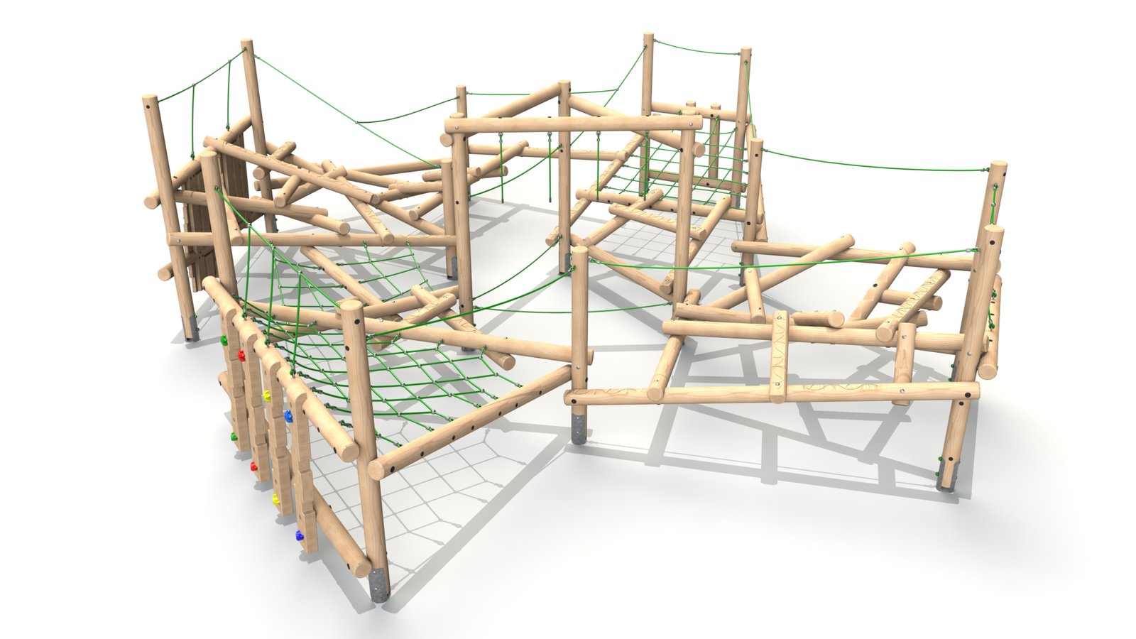 The balance beams provide an excellent challenge for children’s coordination, balance, and core strength. As they carefully walk across the beams, children improve their body awareness and focus, testing their balance in a controlled yet exciting environment. The support ropes offer extra stability, ensuring that children feel confident as they navigate the balance beams and other parts of the structure.