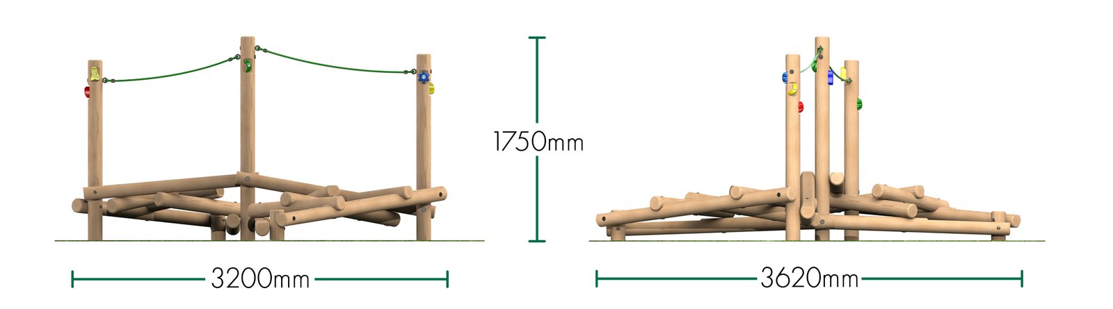 At the core of the Clamber Stack Sorella with Ropes are the scramble logs and scramble posts, which offer children the opportunity to climb, balance, and test their coordination. The scramble logs create an obstacle course challenge, allowing children to balance and crawl across the uneven logs, promoting agility and coordination. The scramble posts encourage children to climb vertically, developing upper body strength, motor skills, and self-confidence as they conquer each post.