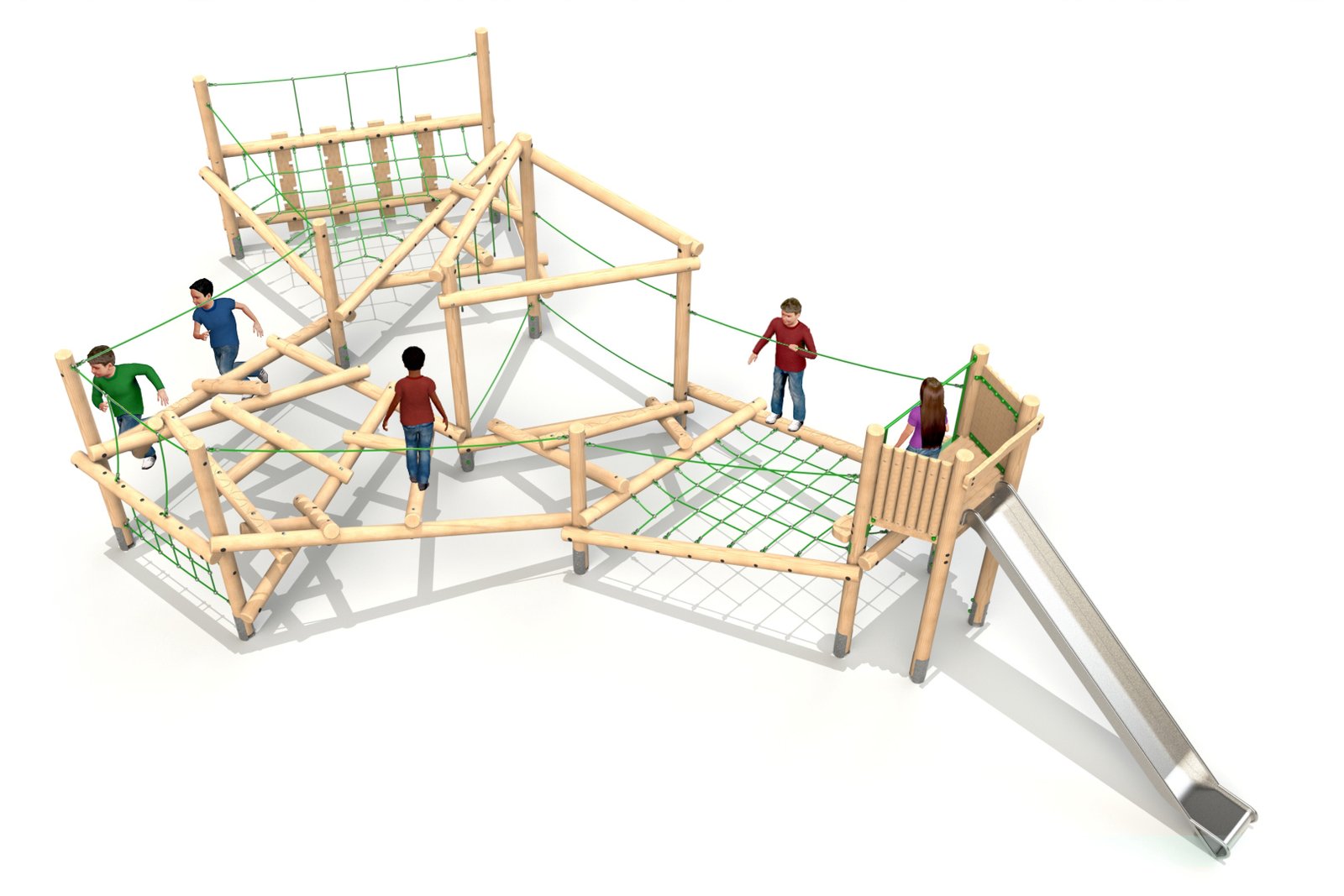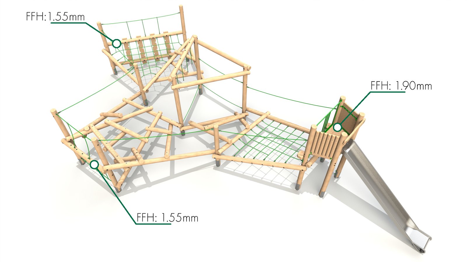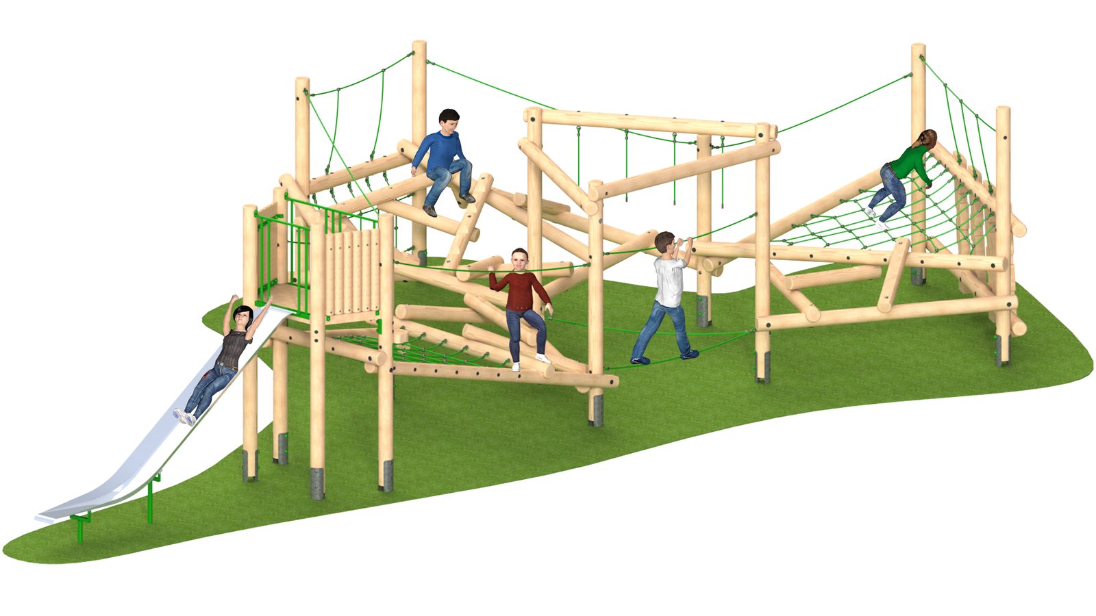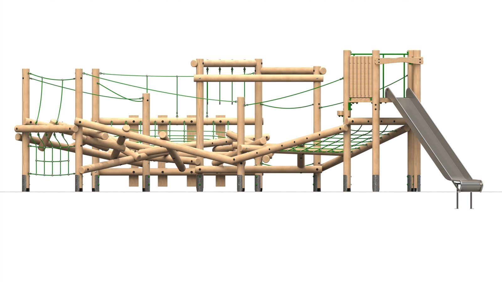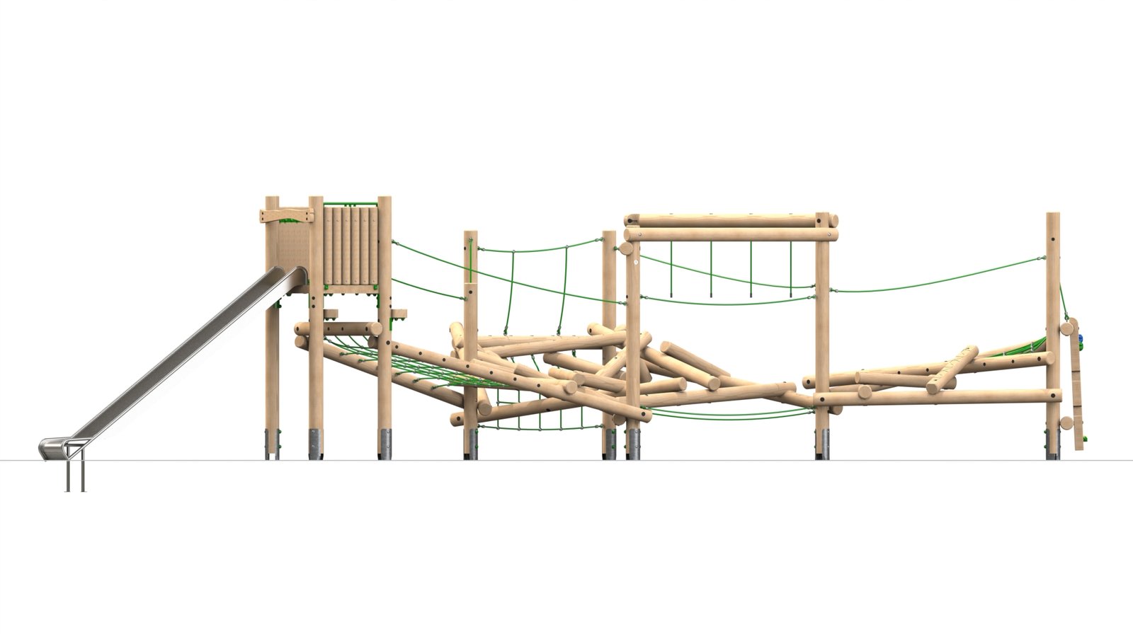 • Support Ropes: The support ropes offer added stability and security for children as they navigate the more challenging parts of the structure, particularly the balance beams and scramble logs. The ropes also allow children to challenge themselves further, whether for balance or for climbing.