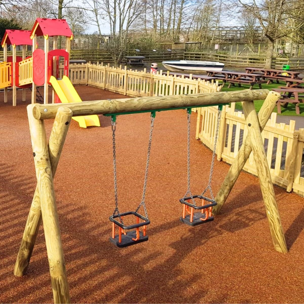 The Double Cradle Seat Swing promotes social interaction as children can swing together, encouraging cooperation, communication, and shared enjoyment. Its sturdy timber frame and high-quality materials are built to withstand regular use, making it a long-lasting feature for schools, parks, or residential play areas. Whether it's a quiet moment of relaxation or a shared adventure, the Double Cradle Seat Swing offers a perfect blend of safety, comfort, and fun.