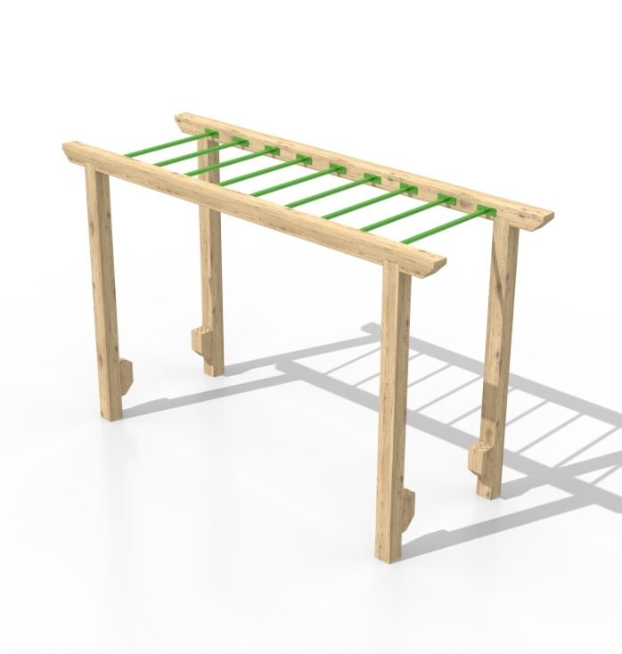 Perfect for school playgrounds, parks, and recreational areas, this combination of timber and metal bars promotes strength-building exercises and active play. It challenges children to use their arms and core to move across the bars, while also improving their coordination and confidence as they master the obstacle.