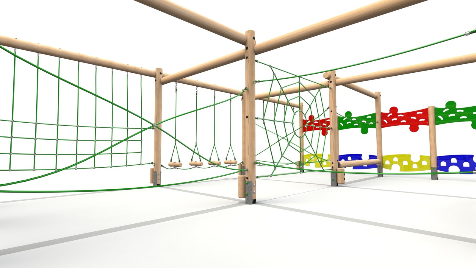 • Rope Weave: A net made of ropes that requires children to weave through, improving their agility and flexibility.