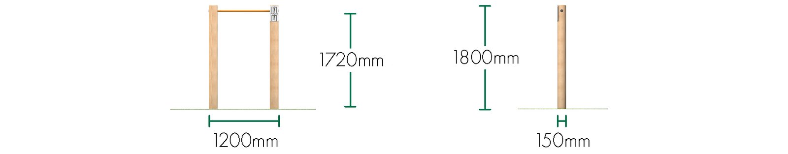 Crafted from high-quality, pressure-treated timber, the Single Bar Chin Up is built to withstand outdoor conditions and heavy use, ensuring it remains a reliable and long-lasting feature. The bar is positioned at a comfortable height, allowing users to perform chin-ups and pull-ups to challenge their physical fitness and enhance their upper body strength.