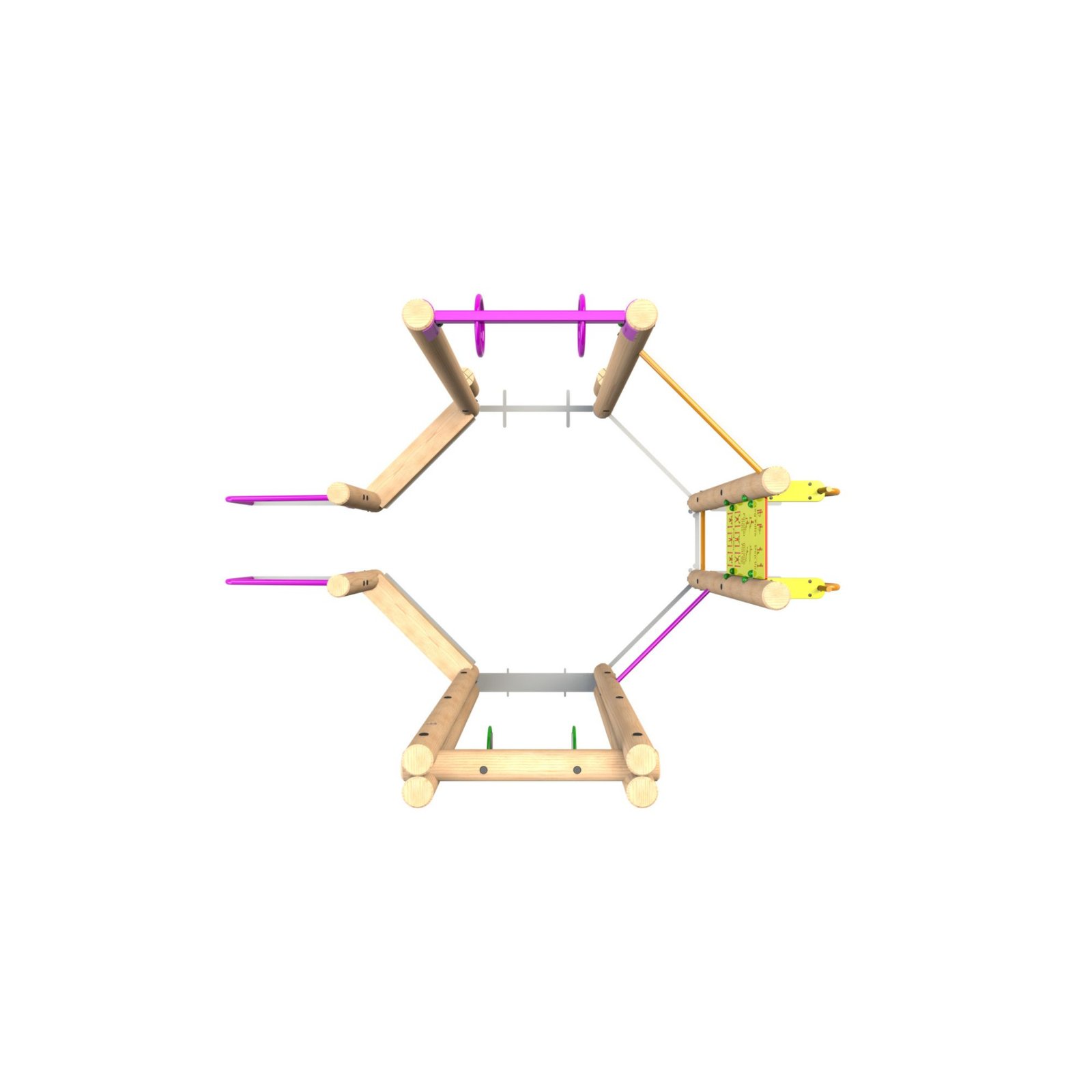 Tarzan Ring Beam: The Tarzan ring beam provides a fun yet challenging way to work on your upper body and core stability. This dynamic feature helps strengthen the shoulders, arms, and back while improving balance and coordination.