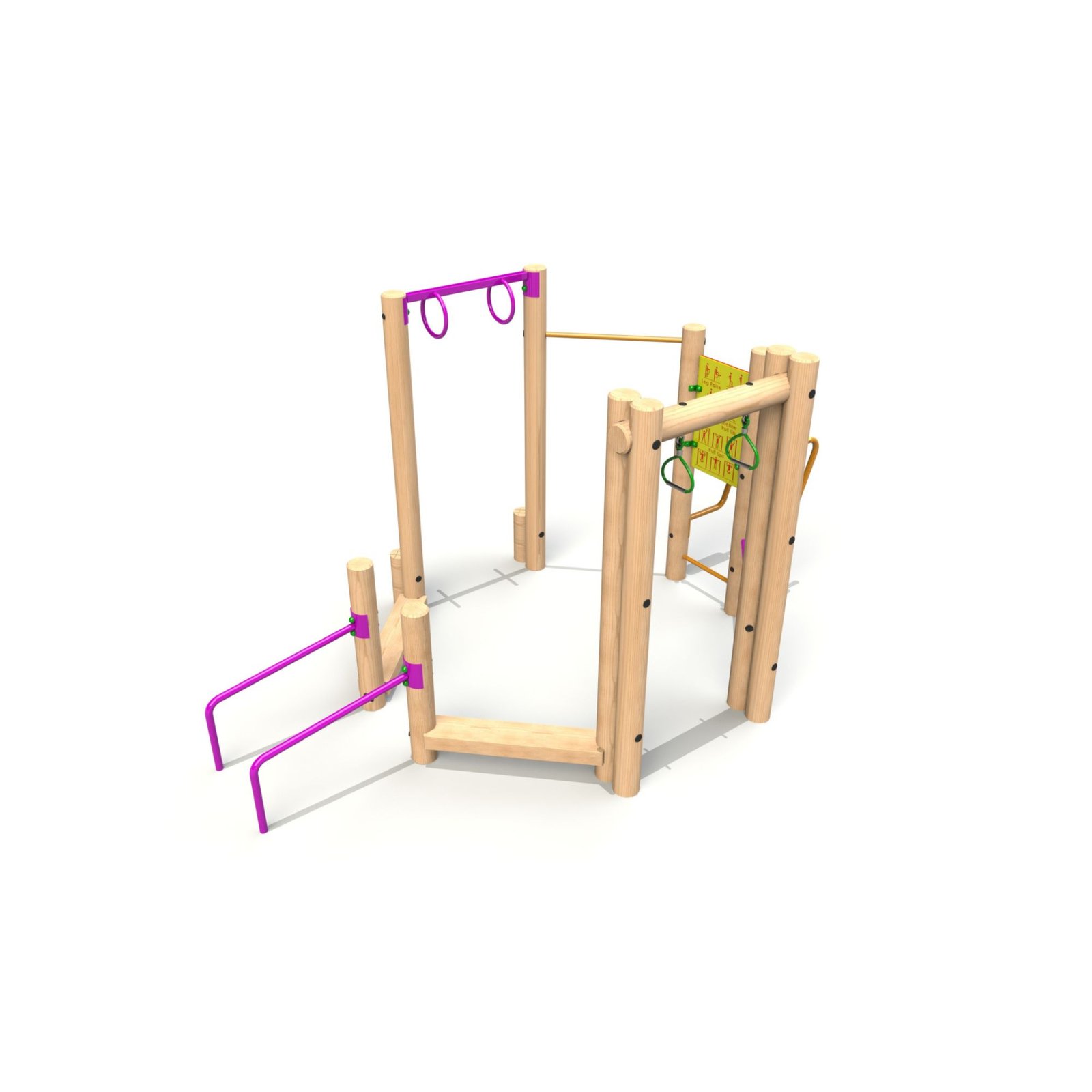 The Tone Up Zone is an all-in-one outdoor gym unit designed to target multiple muscle groups and help users improve their strength, endurance, and overall fitness. Perfect for school playgrounds, parks, or fitness areas, this versatile piece of equipment offers a variety of exercise options to build upper body strength, core stability, and lower body power.