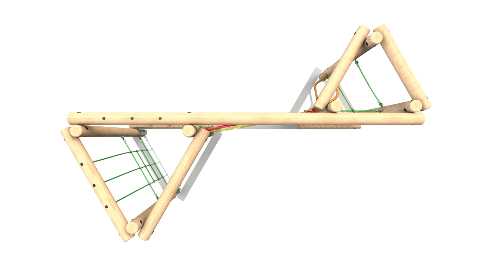 • Beam Traverse: A narrow beam that requires children to balance as they cross, helping to improve their stability and coordination.