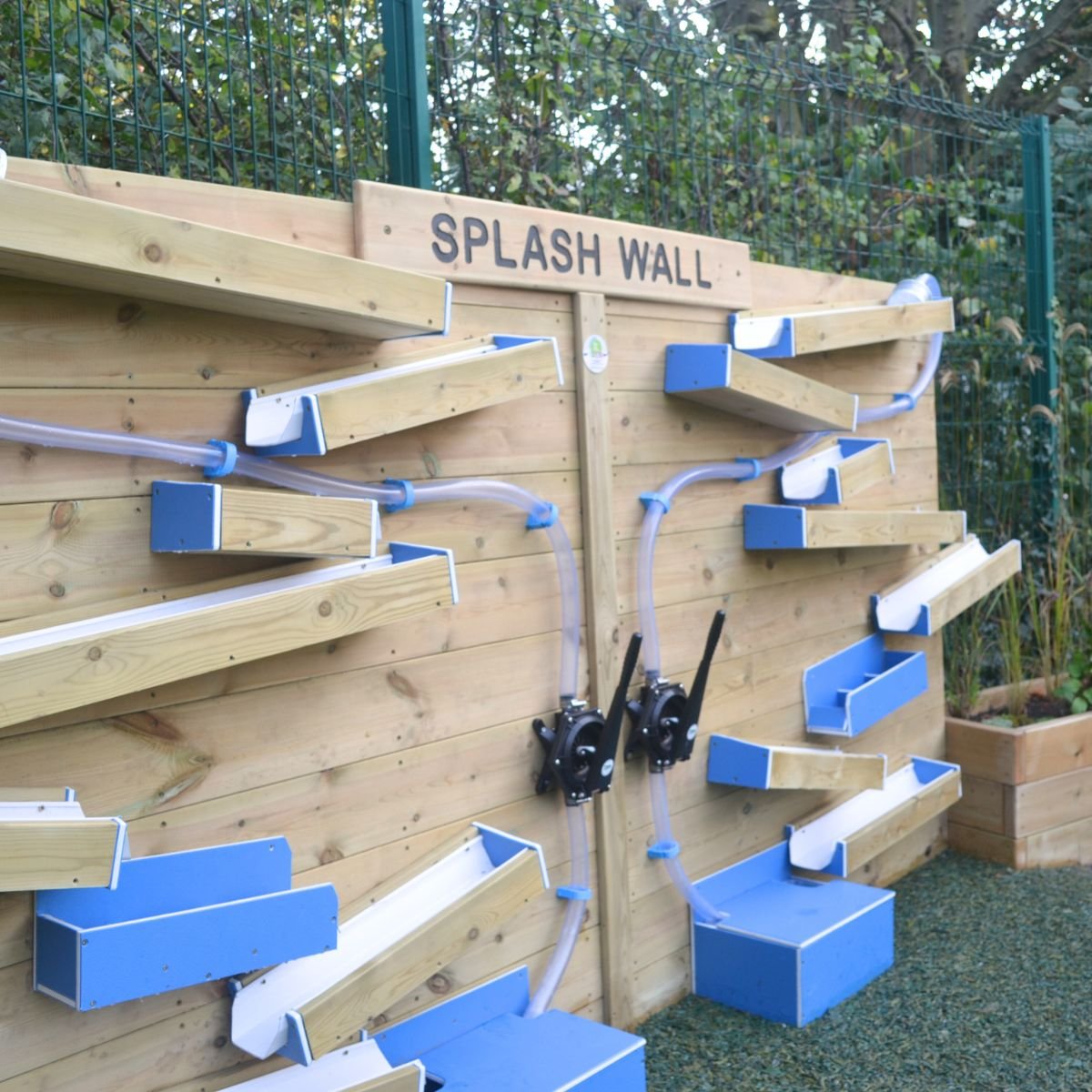 Our Water Wall is a captivating and interactive sensory experience, designed to engage children through touch, sight, and sound. Constructed from durable wood and featuring clear, sturdy tubes, this play feature allows water to flow through various channels, creating a visually stimulating and calming experience. Ideal for playgrounds, schools, and sensory gardens, the Water Wall encourages children to explore the effects of water movement, improving fine motor skills and hand-eye coordination.
